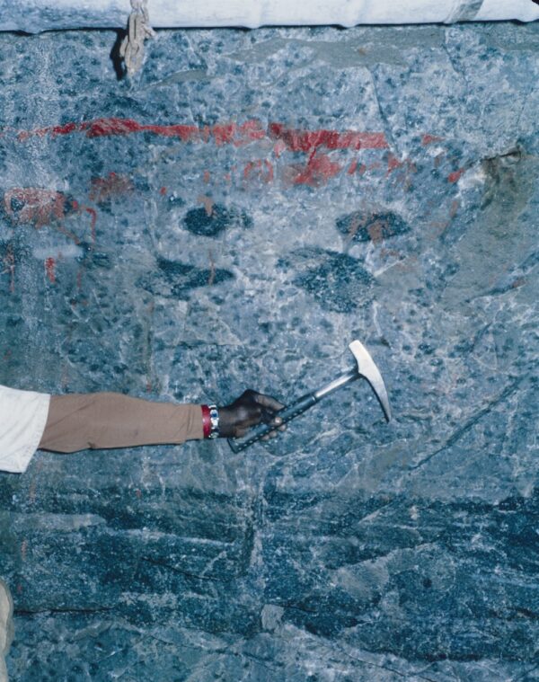 Still to do with construction and ornamental stone we look now at the extraction of marble. The interesting aspect here is that technology has already managed to do away with blasting, which used to cause a lot of wastage due to excessive and uncontrolled cracking of the rock, even under very cautious controlled methods. Nowadays a diamond wire is used, that is, a wire line impregnated with diamond chips. Figure 176 shows the control unit as well as the two sides of the wire loop. On the far side, out of the picture, there is a pulley positioned in such a fashion that the wire is in continuous contact with the marble to be cut. In other words it is a sort of band saw.