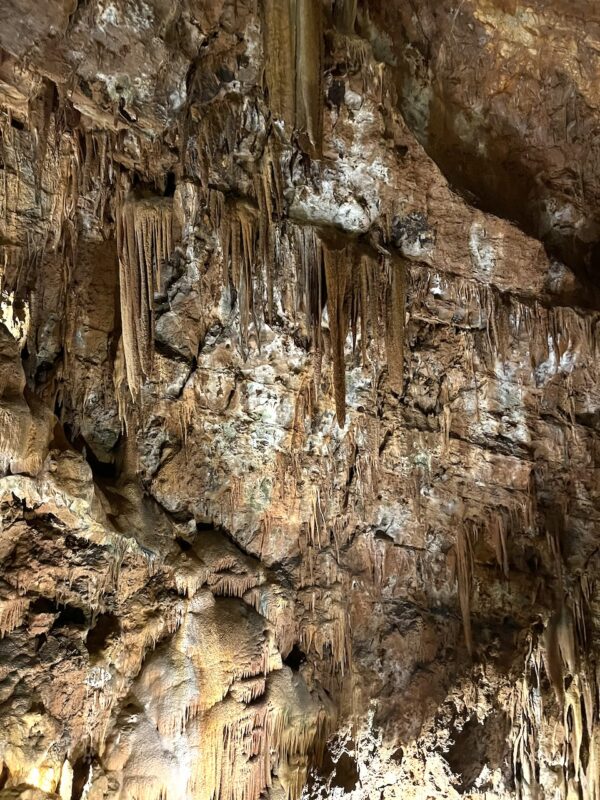 I visited the quarry/mine shown in figure 177, in November of 1998. It is apparent that the exploitation is still within day light. In fact it is a case of cutting inwards from a central open pit. Going underground reduces the need to remove the thick overburden constituted by very weathered and broken marble, thus reducing waste removal. One can have an idea on how close the surface is, because the weathering effect is still noticeable on the upper section of the central portion, which is a structural support pillar. By the way, this pilar also shows how well the wire cutting mechanism mentioned above works.