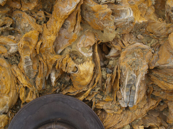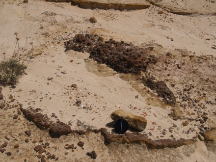 makes the water acidic (fig. 193), completely inhibiting the growth of vegetation. The example I show is of a very small open pit copper mine in Portugal, which ceased its work in 1965, and as can be seen in figure 192 taken in 2010, there are no signs of any vegetation whatsoever. Worst still, these sulphide open pit mines tend to be very large indeed, and it must be incredibly difficult to rehabilitate them.