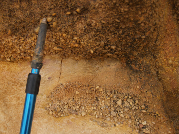 Just as primitive, is the use of laterite for the construction of houses. This material occurs in regions with high precipitation. India is a great example, with their well known monsoons. There, I saw laterite being mined (fig. 31D) by cutting it in blocks (fig. 166) for the construction of houses. These blocks are rather large, about 0.5 x 0.3 x 0.1 metres but they are not too heavy, so they can be handled reasonably easily. Also, I was told no cementing material is needed since, with time and the enormous amounts of rain they have, the iron in the laterite is mobilised some more and the blocks seal themselves.